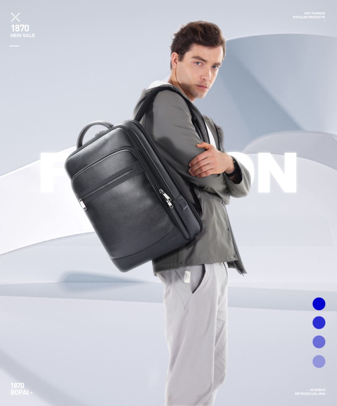 Δερμάτινο Σακίδιο πλάτης Αντικλεπτικό 24L Laptop 15,6” Bopai 61-121561 μαύρο