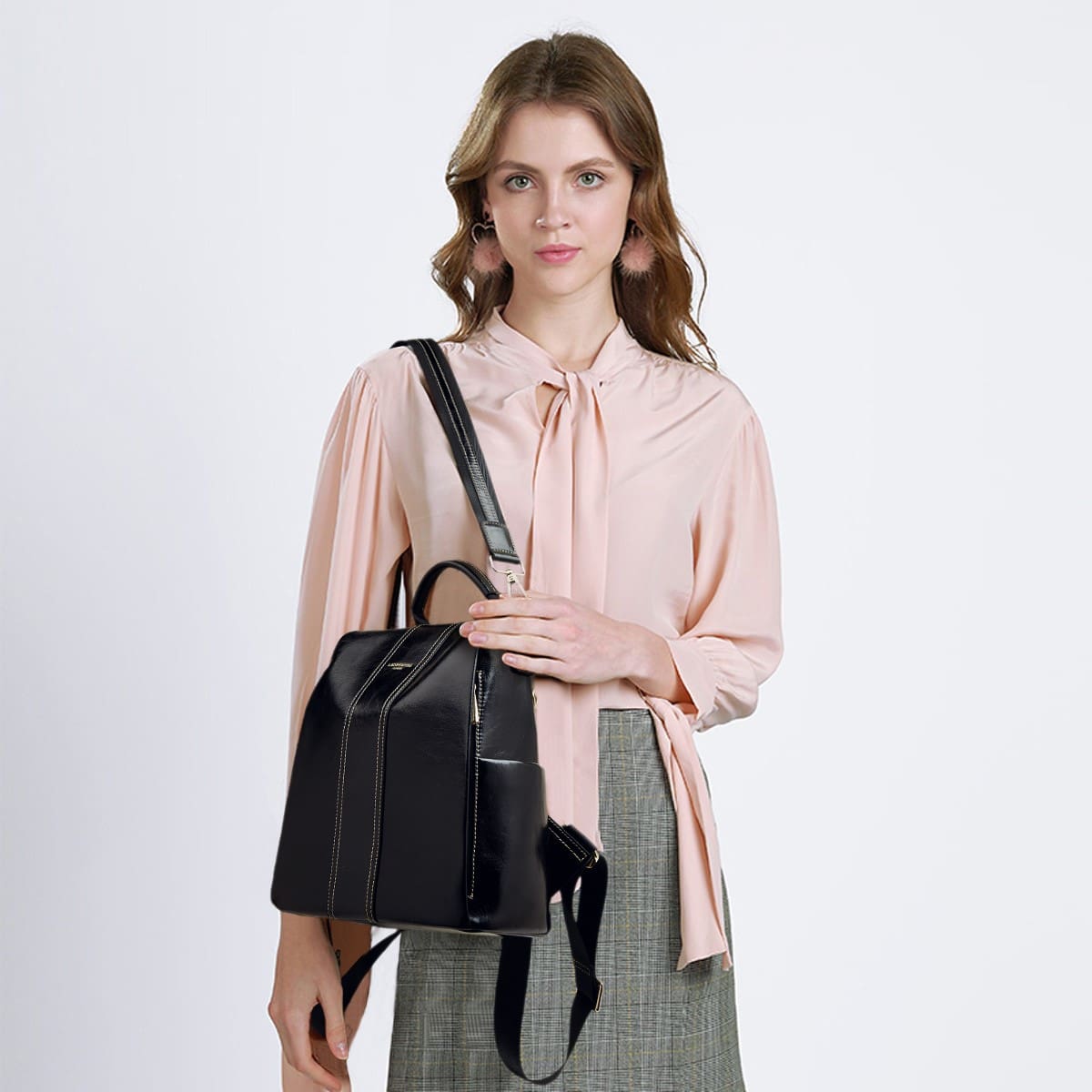 Split leather Γυναικείo Σακίδιο Πλάτης Χιαστί Laorentou 9113046L μαύρο