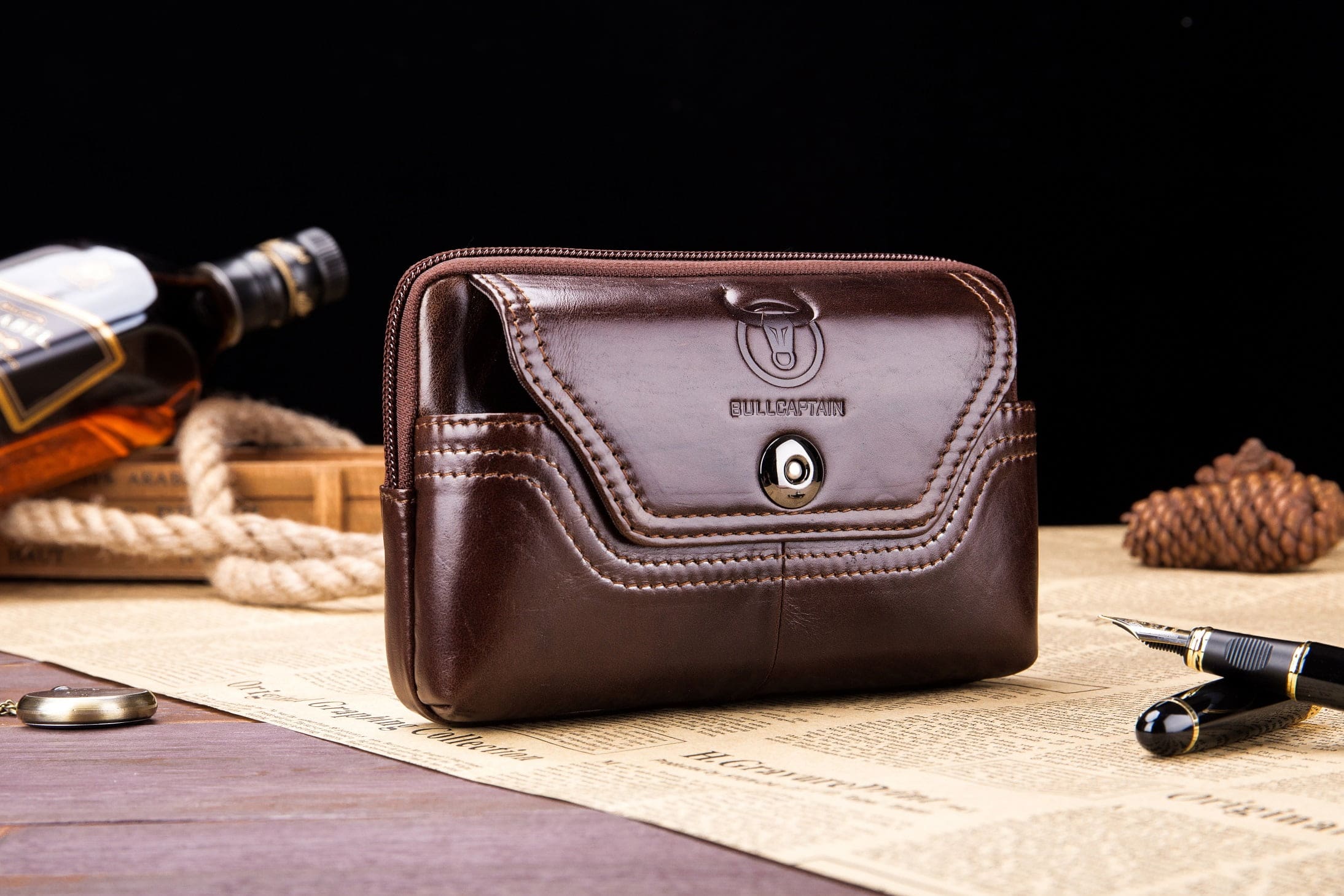 Τσαντάκι Μέσης - Ζώνης Δερμάτινο Σκούρο Καφέ Bull Captain YB04