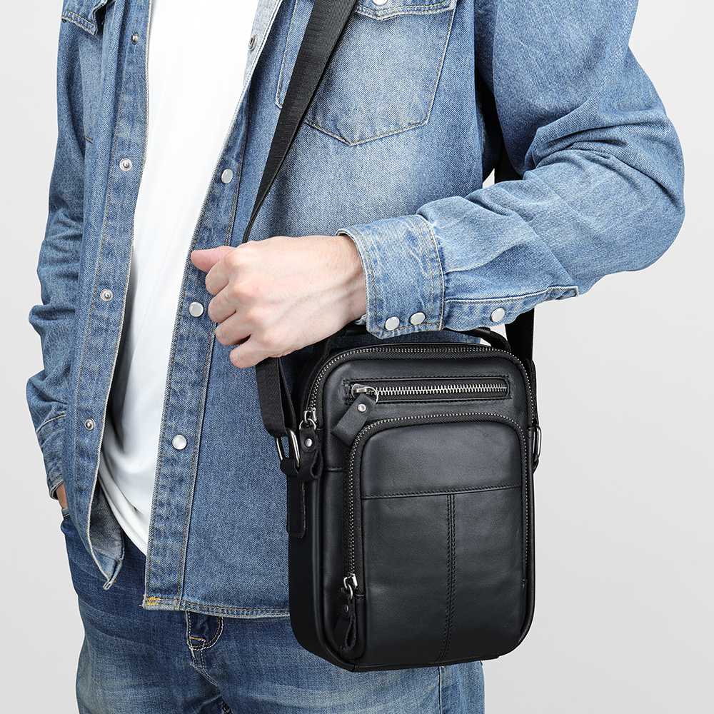 Δερμάτινο Ανδρικό Τσαντάκι Ώμου με Πολλαπλές Θήκες Κομψότητα και πρακτικότητα σε κάθε εμφάνιση Αυτό το δερμάτινο ανδρικό τσαντάκι είναι η ιδανική επιλογή για τον σύγχρονο άνδρα που θέλει στυλ και άνεση μαζί. Η μαύρη απόχρωση και ο μινιμαλιστικός σχεδιασμός του το κάνουν να ταιριάζει εύκολα τόσο σε καθημερινές όσο και σε πιο επίσημες εμφανίσεις. Οργάνωση τσάντας χωρίς περιορισμούς Με πολλαπλές θήκες και ειδικά διαμερίσματα, προσφέρει άψογη οργάνωση: Κεντρική θήκη με φερμουάρ για μεγαλύτερα αντικείμενα Θήκες για κάρτες, κλειδιά και έγγραφα Εσωτερικές και εξωτερικές θήκες με φερμουάρ για ασφάλεια Χώρο για tablet έως 7.9’’ iPad, κινητό τηλέφωνο, πορτοφόλι, φορτιστή και γυαλιά Ελαφρύ και ανθεκτικό τσαντάκι Με βάρος μόλις 0,35 kg και κατασκευή από γνήσιο δέρμα, το τσαντάκι συνδυάζει ανθεκτικότητα και άνεση στη μεταφορά. Ο ρυθμιζόμενος ιμάντας ώμου προσφέρει προσαρμογή σε κάθε στυλ, ενώ το δερμάτινο χερούλι δίνει επιπλέον ευκολία. Η ιδανική επιλογή Είτε για την καθημερινή βόλτα στην πόλη είτε για επαγγελματικές συναντήσεις και ταξίδια, το δερμάτινο ανδρικό τσαντάκι ώμου αποτελεί έναν αξιόπιστο σύντροφο που συνδυάζει ποιότητα, πρακτικότητα και διαχρονική κομψότητα.