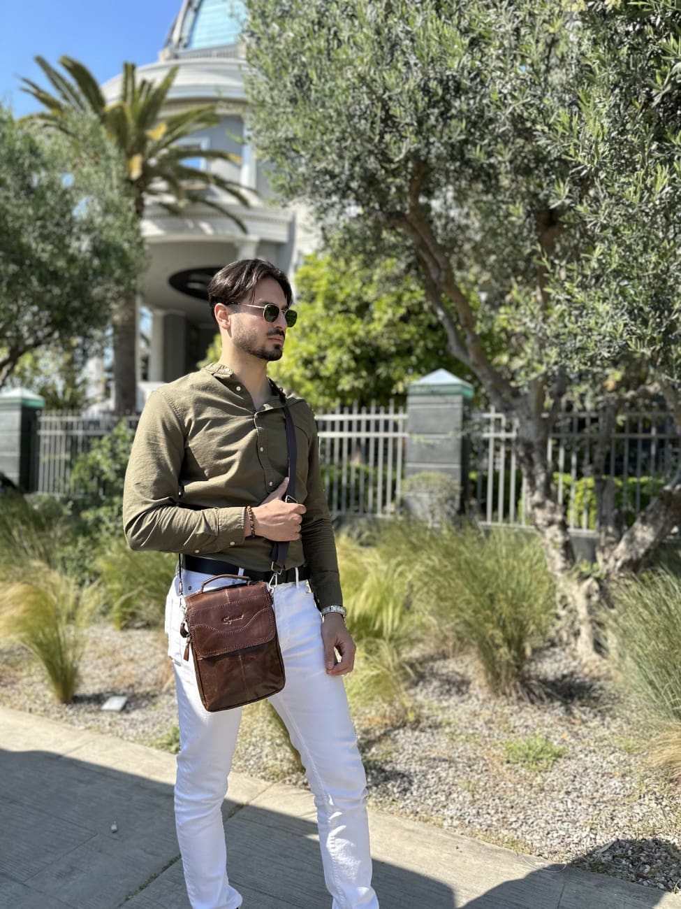 Δερμάτινο τσαντάκι ώμου 8558 σκούρο καφέ