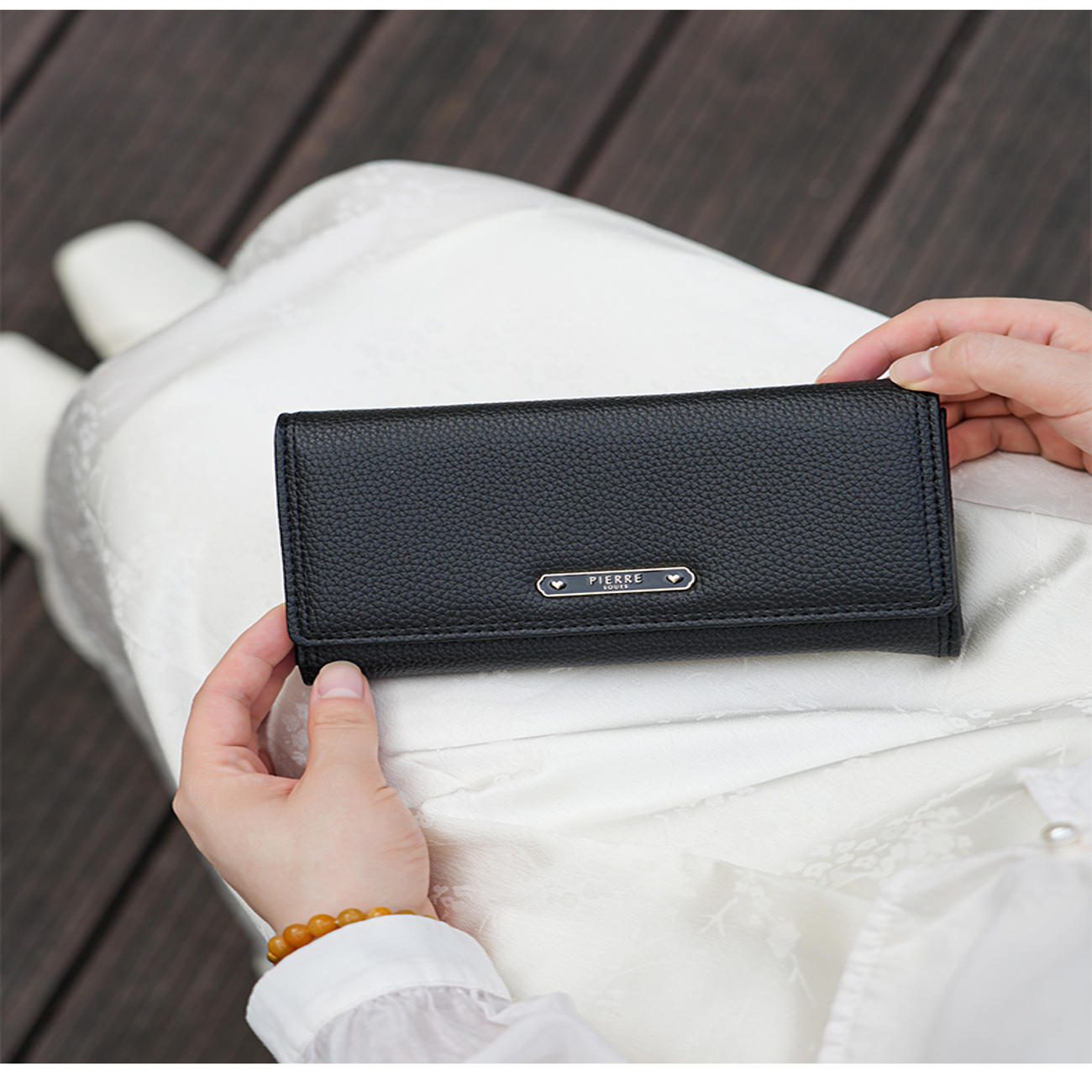 Πορτοφόλι Γυναικείο Pierre Loues 819-58 Κομψό και Πρακτικό για Καθημερινή Χρήση Το πορτοφόλι γυναικείο Pierre Loues 819-58 συνδυάζει κομψότητα και άνεση, ώστε να καλύπτει τις ανάγκες της σύγχρονης γυναίκας. Διατηρεί καθαρές γραμμές και minimal αισθητική, ενώ ταιριάζει εύκολα με κάθε τσάντα και κάθε στυλ. Έτσι, λειτουργεί άψογα τόσο στην καθημερινότητα όσο και σε πιο επίσημες στιγμές. Υλικό και Αίσθηση Αφής Το πορτοφόλι χρησιμοποιεί υψηλής ποιότητας συνθετικό υλικό PU, το οποίο προσφέρει αντοχή στη συνεχή χρήση και ευχάριστη υφή. Η ανάγλυφη επιφάνεια δίνει αίσθηση πολυτέλειας, ενώ παράλληλα προσφέρει ασφαλές κράτημα. Υλικό: PU ανθεκτικό Χρώμα: Μαύρο Βάρος: 0.165kg Εσωτερική Οργάνωση με Λογική Χωροθέτηση Το εσωτερικό του πορτοφολιού οργανώνει τα απαραίτητα με τρόπο ξεκάθαρο. Διαθέτει πολλαπλές θήκες, ώστε κάθε αντικείμενο να βρίσκει άμεσα τη θέση του. Επιπλέον, η θήκη με φερμουάρ κρατάει τα κέρματα σταθερά και ασφαλή. Θήκες για χαρτονομίσματα Υποδοχές για κάρτες (πιστωτικές, ταυτότητας, άδειας οδήγησης) Κεντρική θήκη με φερμουάρ Μπροστινό κούμπωμα για σταθερό κλείσιμο Η διάταξη βοηθάει να εντοπίζεις γρήγορα αυτό που χρειάζεσαι, χωρίς περιττό άνοιγμα ή άγχος. Απλό Στυλ με Διακριτική Πολυτέλεια Το σχέδιο παραμένει κομψό χωρίς υπερβολές. Η μικρή μεταλλική λεπτομέρεια μπροστά προσθέτει χαρακτήρα, ενώ το μαύρο χρώμα προσφέρει ευκολία συνδυασμού. Έτσι, συνοδεύει άνετα το casual ντύσιμο, αλλά ταιριάζει εξίσου σε business ή βραδινές επιλογές. Γιατί Αξίζει να το Επιλέξεις Διατηρεί οργάνωση χωρίς όγκο Συνοδεύει κάθε εμφάνιση με διακριτική αισθητική Προσφέρει αντοχή στη συχνή χρήση Κρατάει χρήματα και κάρτες τακτοποιημένα και άμεσα προσβάσιμα Συνολικά, το πορτοφόλι γυναικείο Pierre Loues αποτελεί καθημερινό αξεσουάρ που συνδυάζει πρακτικότητα και κομψότητα, προσφέροντας άνεση σε κάθε χρήση. ΔΙΑΣΤΑΣΕΙΣ : 19 × 3.5 × 10 CM