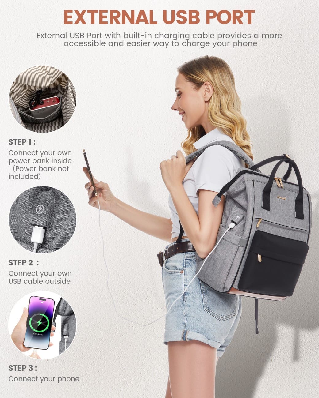 Γυναικείο Σακίδιο με USB Lovevook 15,6'' MB2146 gray/black