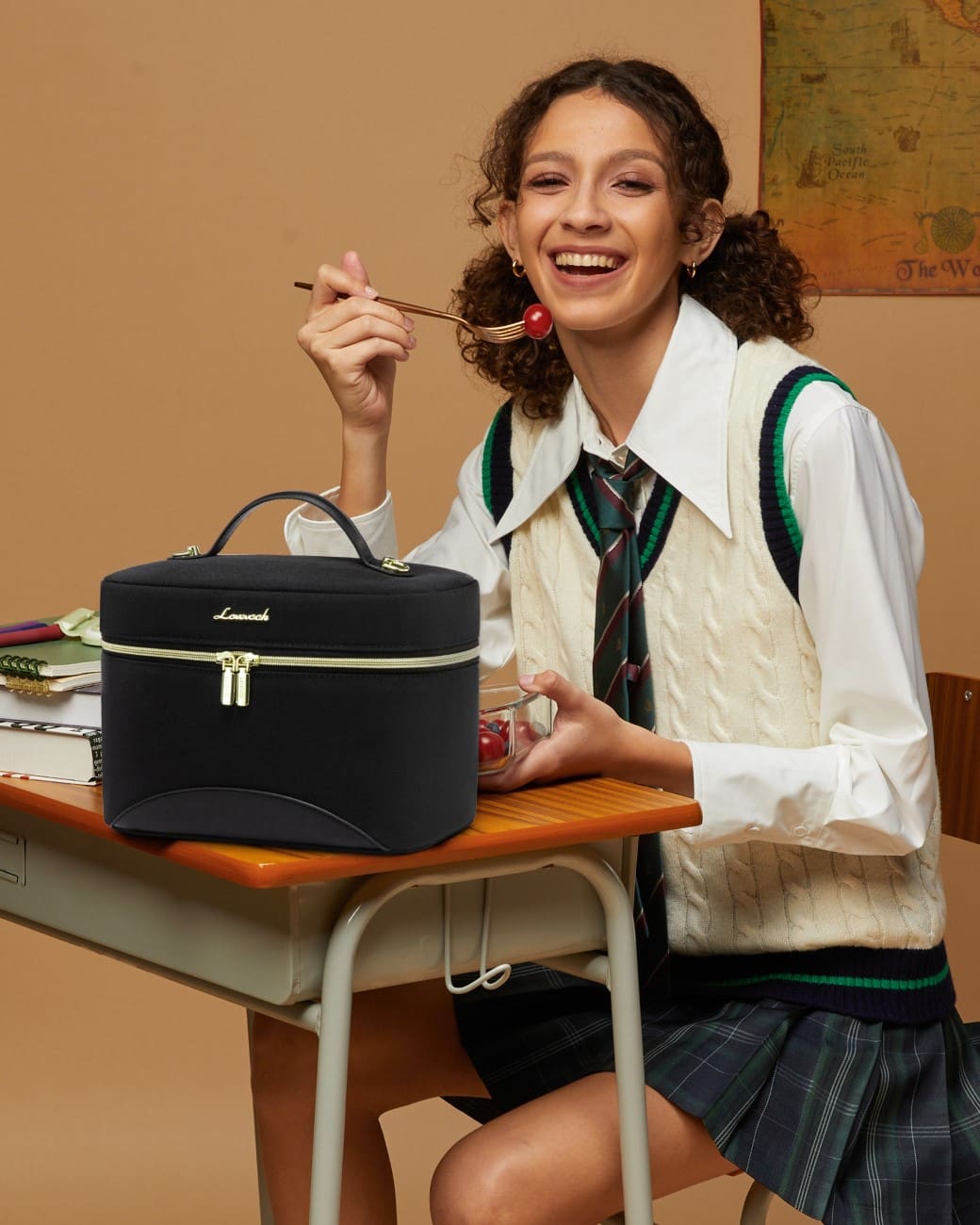 Lunch Bag Ισοθερμική τσάντα για κάθε περίσταση Η Lunch Bag Ισοθερμική τσάντα της LOVEVOOK είναι πρακτική και άνετη επιλογή για όλες τις ανάγκες σου. Ειδικότερα, μπορείς να την πάρεις στο γραφείο, στο πανεπιστήμιο, καθώς και στις εκδρομές σου. Συγκεκριμένα, το μεσαίο μέγεθος (6.5 λίτρα) χωρά δύο δοχεία φαγητού και μερικά φρούτα. Έτσι, μπορείς να οργανώνεις εύκολα όλα τα γεύματα και τις λιχουδιές σου. Τριπλή θερμομόνωση για ιδανική θερμοκρασία Η Lunch Bag Ισοθερμική τσάντα διατηρεί το φαγητό σου φρέσκο για ώρες, χάρη στον ειδικό τριπλό θερμομονωτικό σχεδιασμό της. Πιο συγκεκριμένα, το εξωτερικό ύφασμα από πολυεστέρα προστατεύει από τη ζέστη ή το κρύο. Επιπλέον, το εσωτερικό της αποτελείται από αφρώδες μονωτικό υλικό πάχους 5mm. Τέλος, η εσωτερική στρώση από υλικό EVA εξασφαλίζει τη σταθερότητα της θερμοκρασίας. Έτσι, μπορείς να απολαμβάνεις το φαγητό σου ζεστό ή δροσερό. Αδιάβροχη και εύκολη στο καθάρισμα Επιπλέον, η Lunch Bag Ισοθερμική τσάντα διαθέτει αδιάβροχη εσωτερική επένδυση EVA και θερμοκολλημένες ενώσεις. Κατά συνέπεια, δεν υπάρχουν διαρροές ή λεκέδες. Έτσι, αν συμβεί κάποιο μικρό ατύχημα, απλά σκουπίζεις με ένα νωπό πανί. Επίσης, δεν απαιτεί ιδιαίτερη φροντίδα ή πλύσιμο, εξοικονομώντας σου χρόνο και κόπο στην καθημερινότητα. Άνετη μεταφορά παντού Η τσάντα έχει ρυθμιζόμενο λουρί ώμου καθώς και δερμάτινη λαβή. Επιπλέον, τα μεταλλικά σημεία σύνδεσης προσφέρουν ασφάλεια στη μεταφορά. Έτσι, τη μεταφέρεις εύκολα και με άνεση κάθε μέρα. Εγγύηση ποιότητας και εξυπηρέτηση Έτσι, πραγματοποιείς την αγορά της Lunch Bag Ισοθερμικής τσάντας με απόλυτη σιγουριά. Απόλαυσε γεύματα με στιλ Eκτός από την πρακτικότητα, σου προσφέρει και κομψότητα. Το μοντέρνο design ταιριάζει τέλεια με κάθε στυλ, ενώ η ποικιλία στα μεγέθη ανταποκρίνεται σε κάθε σου ανάγκη. Έτσι, απολαμβάνεις καθημερινά ένα πρακτικό αξεσουάρ που συμπληρώνει ιδανικά την εμφάνισή σου σε κάθε περίσταση. ΔΙΑΣΤΑΣΕΙΣ : 25,4 x 14,5 x 17,8 cm