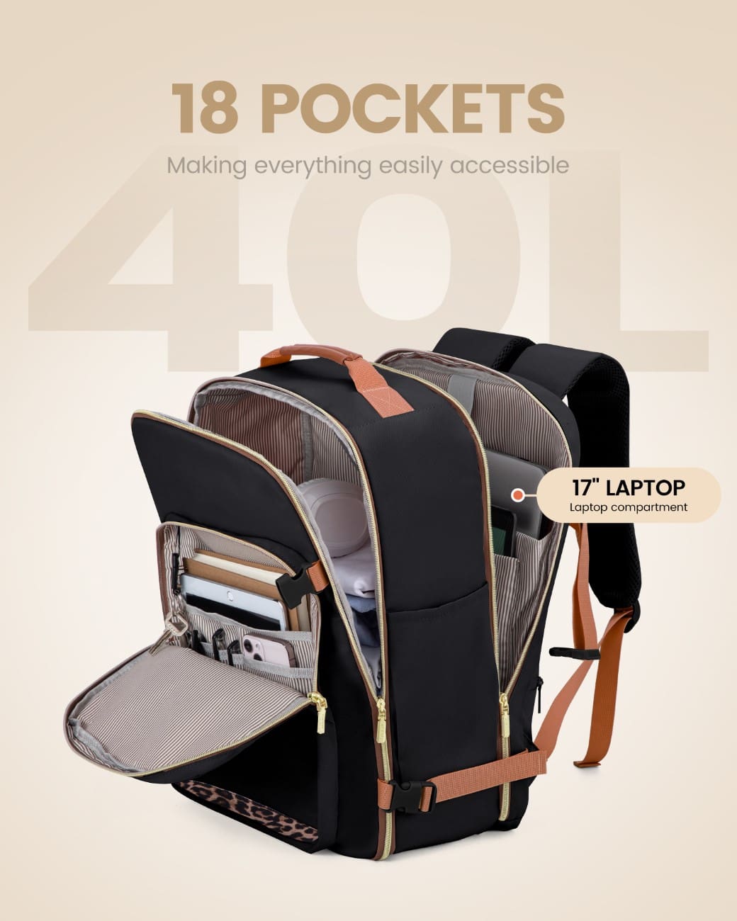 Σακίδιο ταξιδιού για γυναίκες 40L Carry on 17,3" WB2029 black leopard