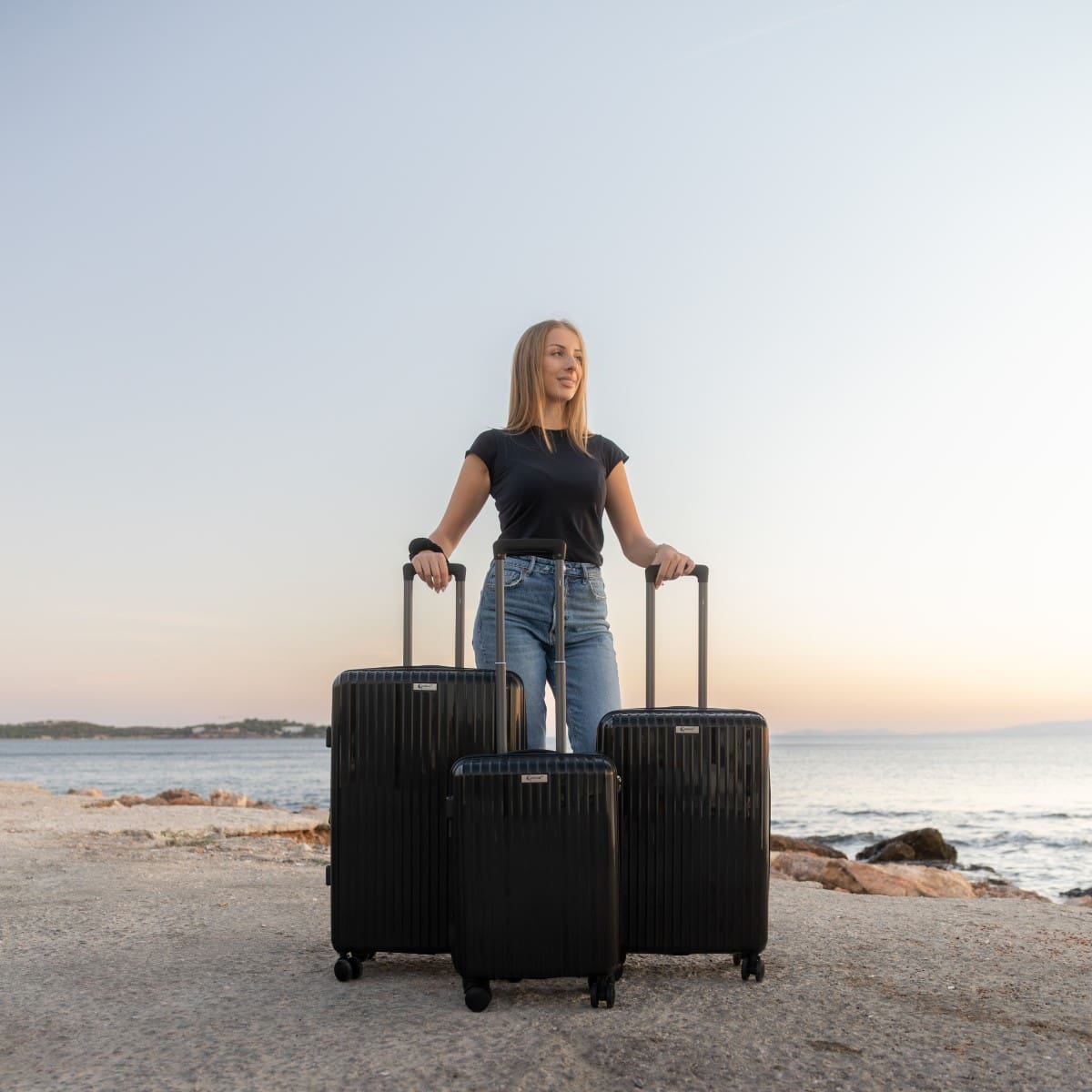 Απολαύστε άνεση και ασφάλεια στα ταξίδια σας με τις βαλίτσες μας από πολυπροπυλένιο (PP). Κύρια Χαρακτηριστικά: Υλικό Υψηλής Αντοχής (PP): Ελαφρύ, άθραυστο και ανθεκτικό σε γρατσουνιές, τριβή και νερό. 3 χρόνια εργοστασιακή εγγύηση για το σκληρό υλικό. Αντικλεπτικό Διπλό Φερμουάρ: Προστατεύει τα υπάρχοντά σας από κλοπές. Κλειδαριά TSA: Ενσωματωμένη κλειδαριά συνδυασμού 3 ψηφίων, εγκεκριμένη από την TSA. Τέσσερις Περιστρεφόμενοι Τροχοί: Ομαλή και αθόρυβη μετακίνηση 360°. Επεκτεινόμενη Χωρητικότητα: Έως 25% επιπλέον χώρος (μόνο στη μεσαία και μεγάλη βαλίτσα). Εργονομική Τηλεσκοπική Λαβή: Ρυθμιζόμενη λαβή για άνετο χειρισμό. Εσωτερική Οργάνωση: Πλήρως επενδυμένο εσωτερικό με διαμερίσματα, ιμάντες συγκράτησης και τσέπες. Διαστάσεις & Βάρος: Μεγάλη: 28" (68cm x 47cm x 31cm) + 5cm επέκταση, 4.600kg. Μεσαία: 24" (58cm x 40cm x 28cm) + 5cm επέκταση, 3.770kg. Μικρή: 20" (48cm x 35cm x 20cm), 2,800kg. Διαστάσεις ρόδας: 7cm Οδηγίες για την Κλειδαριά TSA: Αρχικός συνδυασμός: 0-0-0. Ορίστε τον προσωπικό σας συνδυασμό ακολουθώντας τις οδηγίες μέσα στην βαλίτσα .