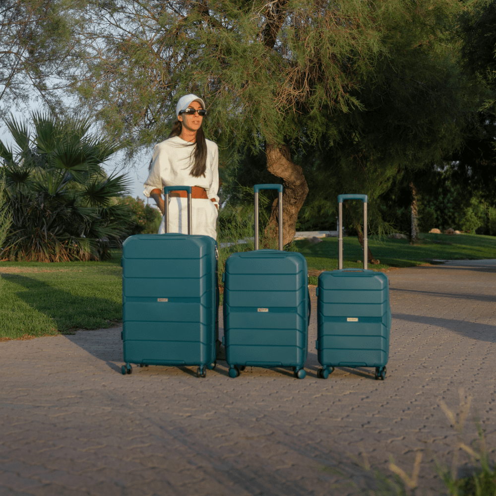 Βαλίτσα Πολυπροπυλενίου (PP): Ανθεκτικότητα και Ασφάλεια στα Ταξίδια σας Ανακαλύψτε την ιδανική βαλίτσα ταξιδίου από ανθεκτικό πολυπροπυλένιο (PP), σχεδιασμένη για να προσφέρει μέγιστη ασφάλεια και άνεση σε κάθε σας ταξίδι. Κύρια Χαρακτηριστικά: Υψηλή Ανθεκτικότητα: Κατασκευασμένη από ελαφρύ και άθραυστο πολυπροπυλένιο (PP), ανθεκτικό σε γρατσουνιές, τριβή και νερό. 3 χρόνια εργοστασιακή εγγύηση για το σκληρό υλικό (PP) (δεν καλύπτονται ροδάκια και εξαρτήματα). Ευκολία και Άνεση: Τέσσερις διπλοί περιστρεφόμενοι τροχοί 360° για εύκολη και αθόρυβη κύλιση. Τηλεσκοπική λαβή για άνετους ελιγμούς και εργονομική λαβή για εύκολη μεταφορά. Μόνο η μεσαία και η μεγάλη βαλίτσα διαθέτουν επέκταση +5cm Ασφάλεια και Οργάνωση: Ενσωματωμένη κλειδαριά συνδυασμού TSA για ασφάλεια κατά τους ελέγχους στα αεροδρόμια. Δύο ευρύχωρα διαμερίσματα με εσωτερική επένδυση και ιμάντες συγκράτησης ρούχων. Πολλαπλές εσωτερικές τσέπες για άριστη οργάνωση των αντικειμένων σας. Θήκη στο πίσω μέρος για καταγραφή ονοματεπωνύμου διεύθυνσης και τηλεφώνου. Ρυθμίσεις Κλειδαριάς TSA: Εργοστασιακός κωδικός: 0-0-0. Ορίστε τον προσωπικό σας συνδυασμό ακολουθώντας τις οδηγίες. Διαστάσεις και Βάρος: Μεγάλη: 28" (69cm x 47cm x 31cm) + 5cm επέκταση, 4.385kg. Μεσαία: 24" (58cm x 40cm x 27cm) + 5cm επέκταση, 3.660kg. Μικρή: 22" (48cm x 34cm x 21cm), 2.840kg. Διαστάσεις ρόδας: Μεγάλη 8cm, Μεσαία και Μικρή 7,5cm.