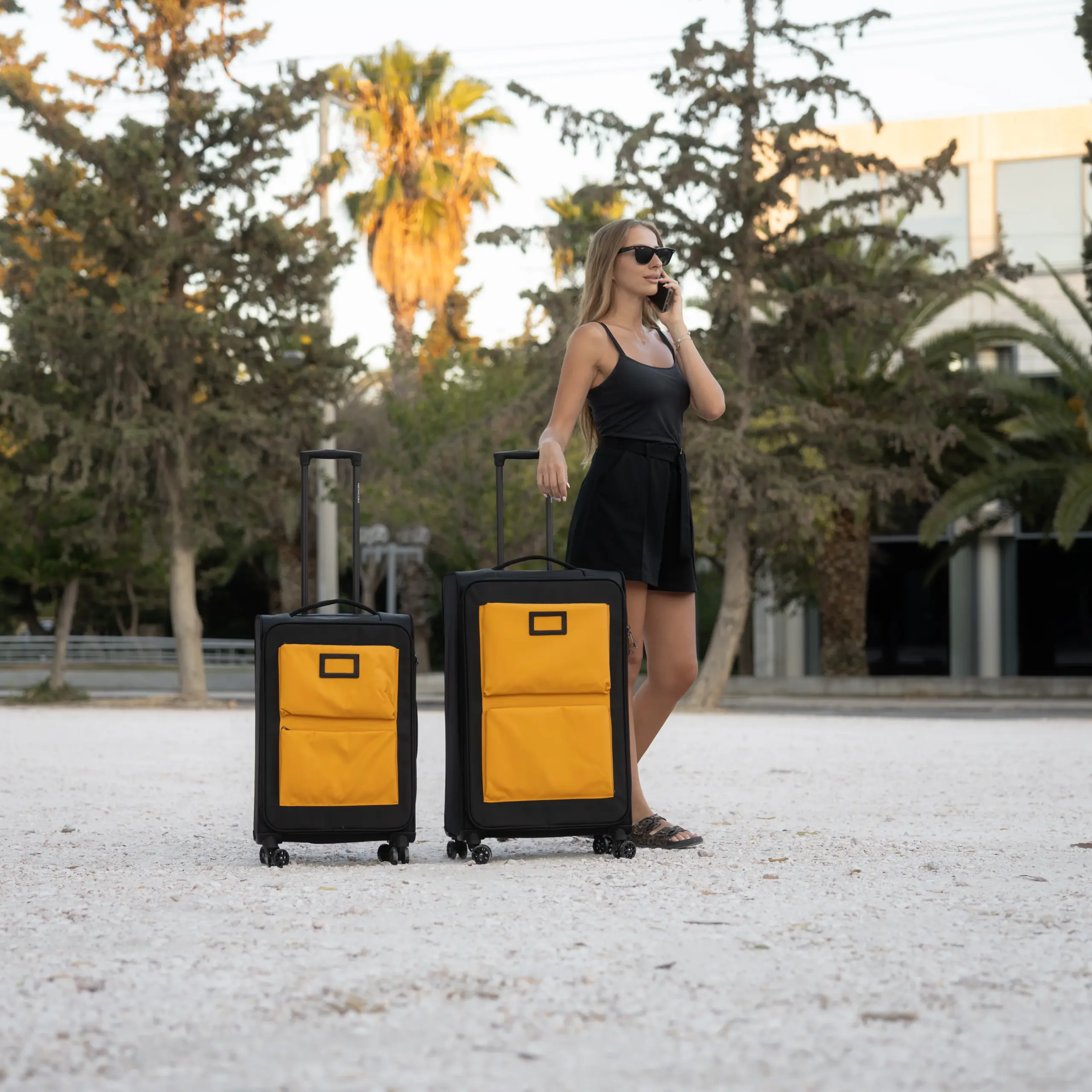 Σετ Βαλίτσες Υφασμάτινες – Μεσαία & Μεγάλη Ιδανικές για Οικογενειακά και Πολυήμερα Ταξίδια Ανακαλύψτε το απόλυτο σετ για ταξιδιώτες που θέλουν άνεση, χωρητικότητα και κομψότητα. Οι δύο υφασμάτινες βαλίτσες, μία μεσαίου μεγέθους και μία μεγάλη, προσφέρουν εργονομικό σχεδιασμό, αντοχή και ελαφριά κατασκευή για εύκολη μεταφορά, ακόμα και στα πιο απαιτητικά ταξίδια. Χαρακτηριστικά Μεσαίας Βαλίτσας (58x39,5x19,5 cm – 2,5 kg) Χωρητικότητα για 20 κιλά – ιδανική για ταξίδια 5-7 ημερών. Ελαφριά κατασκευή (2,5 kg) για ξεκούραστη μεταφορά. Διαστάσεις: 58x39,5x19,5 cm – πρακτικό μέγεθος για πολυήμερες αποδράσεις. Ανθεκτικό υλικό που προστατεύει τα αντικείμενά σας. 4 διπλές ρόδες 360° για ομαλή κύλιση σε κάθε επιφάνεια. Κλειδαριά TSA για ασφαλή διεθνή ταξίδια. Τηλεσκοπική λαβή με ρύθμιση ύψους για άνεση. Ευρύχωρο εσωτερικό με ιμάντες και διαχωριστικά. Μπροστινές τσέπες για εύκολη πρόσβαση σε έγγραφα και μικροαντικείμενα. Χαρακτηριστικά Μεγάλης Βαλίτσας (69x44,5x22,5 cm – 3,1 kg) Μεγάλη χωρητικότητα για 23+ κιλά – ιδανική για 8-12 ημέρες ταξίδι. Εξαιρετικά ελαφριά για την κατηγορία της (μόλις 3,1 kg). Διαστάσεις: 69x44,5x22,5 cm – ιδανική για μακρινά ταξίδια. Ανθεκτικό ύφασμα που αντέχει σε συχνές μετακινήσεις. Ρόδες 360° για αθόρυβη και άνετη κίνηση. Κλειδαριά TSA για απόλυτη ασφάλεια. Τηλεσκοπική λαβή αλουμινίου για εύκολο χειρισμό. Ευρύχωρο εσωτερικό με ιμάντες και διαχωριστικά. Πρακτικές μπροστινές τσέπες για έγγραφα και αξεσουάρ. Γιατί να Επιλέξετε το Σετ; ✔ Ιδανικό για πολυήμερα ταξίδια και οικογενειακές διακοπές.✔ Μεγάλη χωρητικότητα χωρίς υπερβολικό βάρος.✔ Ασφάλεια με κλειδαριά TSA και άνεση με ρόδες 360°.✔ Μοντέρνος συνδυασμός μαύρου με πράσινες λεπτομέρειες για κομψότητα. Τεχνικά Στοιχεία Μεσαία Βαλίτσα: 58x39,5x19,5 cm – 2,5 kg Μεγάλη Βαλίτσα: 69x44,5x22,5 cm – 3,1 kg Υλικό: Ανθεκτικό υφασμάτινο Ρόδες: 4 διπλές, περιστροφή 360° Κλείδωμα: TSA Χρώμα: Μαύρο με Πράσινες Λεπτομέρειες ✅ Αποκτήστε τώρα το σετ και ταξιδέψτε με άνεση, ασφάλεια και στυλ!