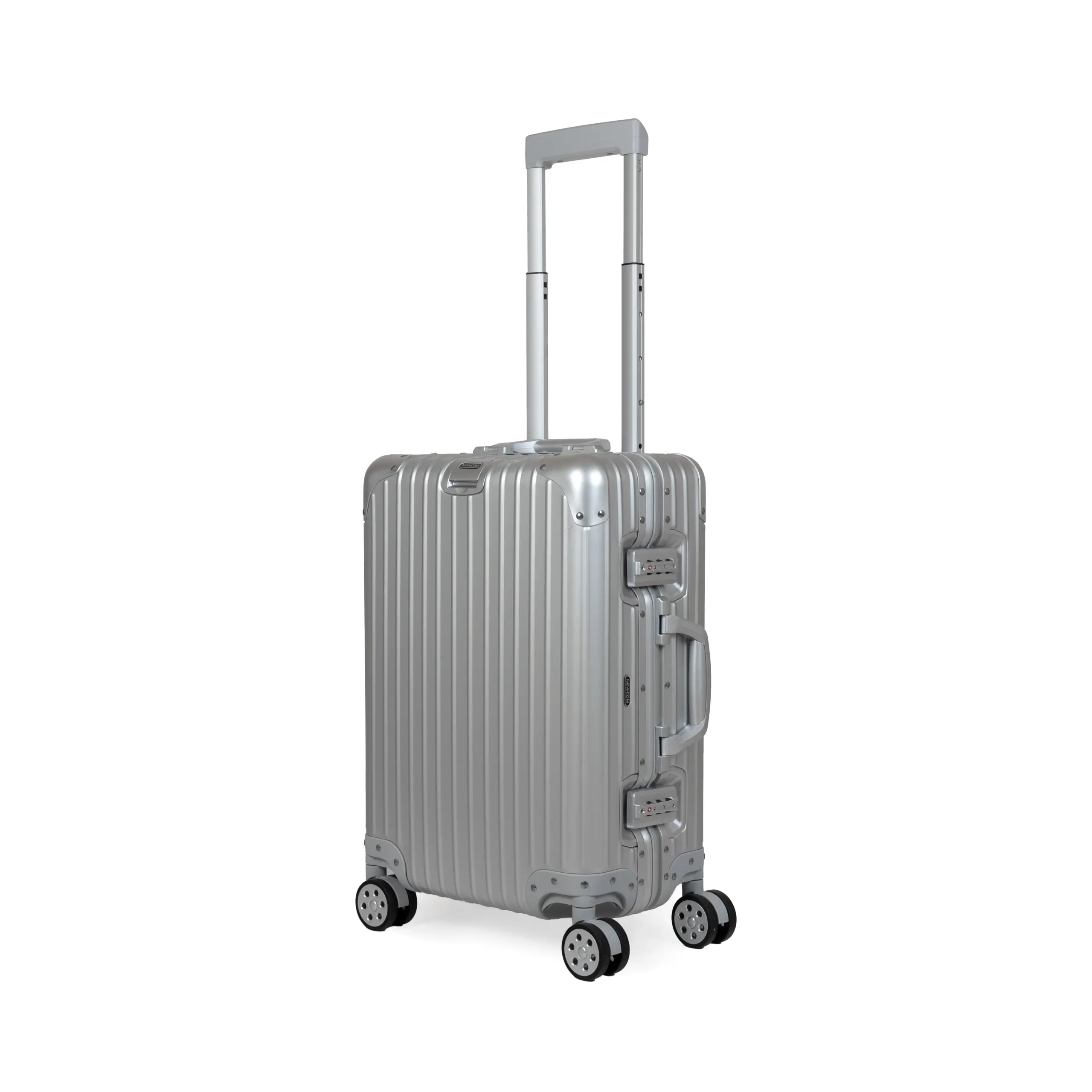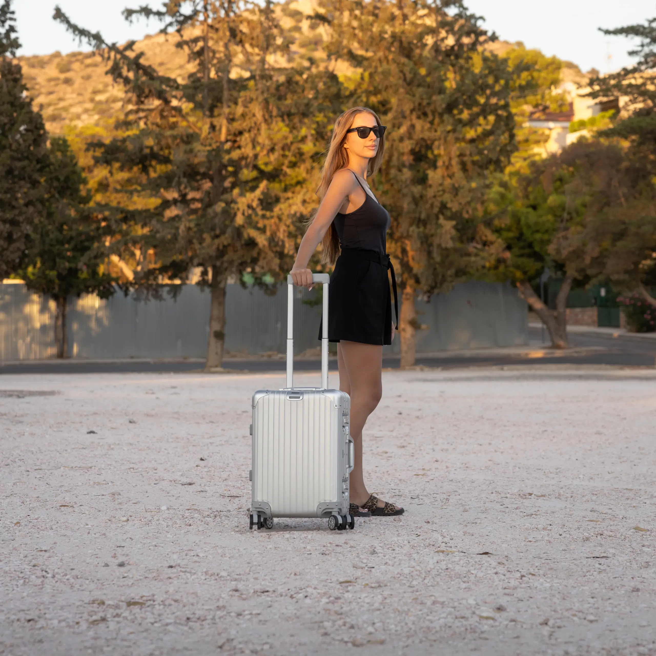 Στιβαρή βαλίτσα καμπίνας από αλουμίνιο, με διπλές κλειδαριές TSA, ρόδες 360° και οργανωμένο εσωτερικό. Αντοχή, στυλ και ασφάλεια στο ταξίδι σου.