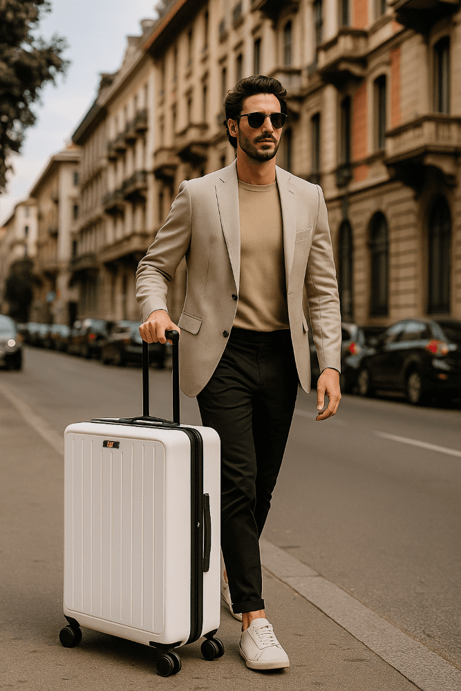 Βαλίτσα ταξιδίου μεσαία με μπροστινό άνοιγμα, expander, τροχούς Hinamoto, TSA κλειδαριά και θήκη laptop για απόλυτη οργάνωση.